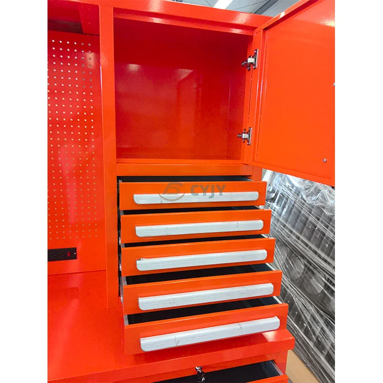 میز کار ابزار گاراژ سنگین از فولاد نورد سرد ساخته شده است که دوام و استحکام بیشتری دارد. میز کار ابزار گاراژ سنگین یک منطقه کاری است که معمولاً برای کارهای مونتاژ، تعمیر و نگهداری استفاده می شود. این شامل میزها، کشوها، قفسه ها و سایر قسمت های ذخیره ابزار است که به کاربران کمک می کند ابزارها و مواد را سازماندهی و ذخیره کنند تا کارآمدتر کار کنند و زندگی ما را راحت تر کنند.