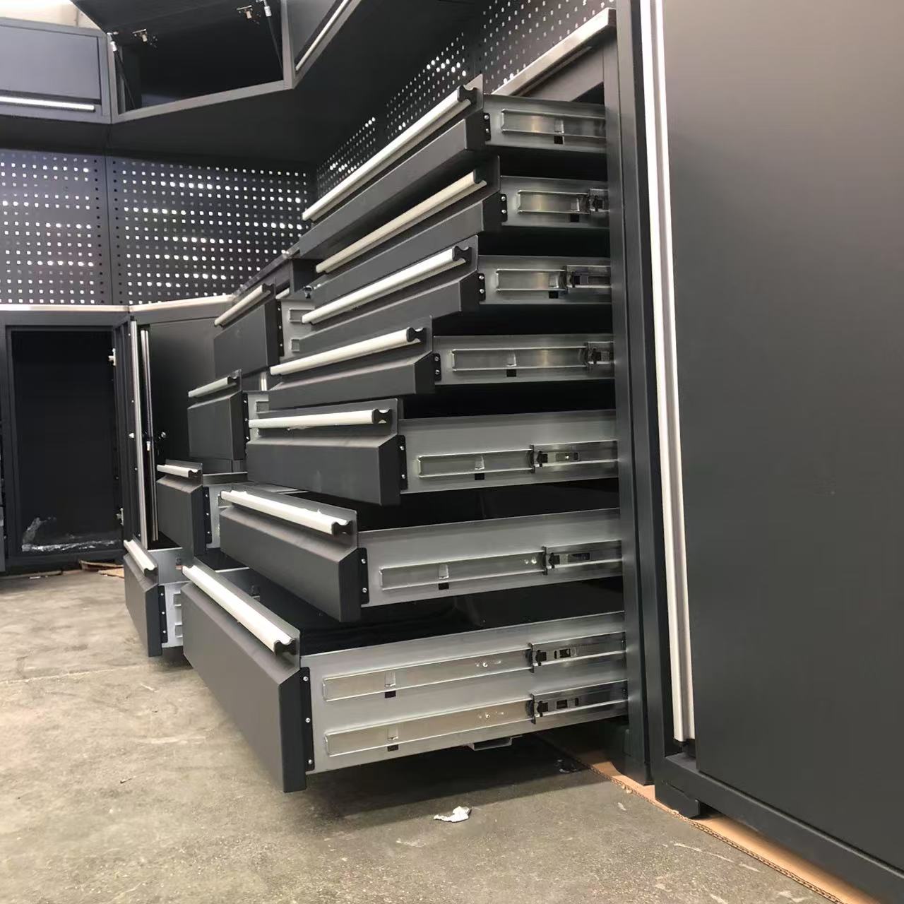کابینت ابزار ، میز کار ابزار سنگین چند منظوره ، کابینت گاراژ ، سبد گودال ابزار ، جعبه ابزار ، دسترسی به قفسه سینه ، خانه کانتینر و غیره.